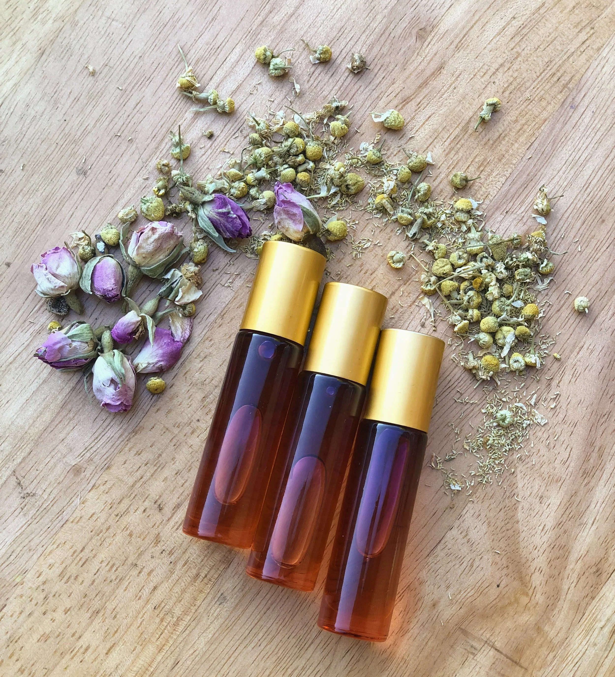 Organic and blended with TLC: evening primrose oil, camellia seed oil, jojoba oil, sea buckthorn oil, chamomile-rose-lavender infused avocado oil, vitamin E, helichrysum & rose essential oils